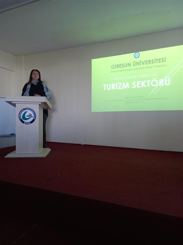 Giresun OTEM Turizm Genel Müdürü Emine FATOĞLU TOPKAYA, yüksekokul öğrencilerimize Dünya'da ve Türkiye’de turizm gelişmeleri hakkında bilgi verdi. Özellikle Giresun ili başta olmak üzere Doğu Karadeniz Bölgesi ve Türkiye turizminin güçlü yönleri, zayıf yönleri, fırsatlar ve tehditler hakkında tecrübelerini paylaşarak, öğrencilerden gelen soruları da yanıtladı. Aynı zamanda, çok sayıda Avrupa projelerine ve diğer projelere imza atmış olan Fatoğlu Topkaya yüksekokul akademisyenleriyle de Giresun ilinin turizm kaynaklarının geliştirilmesi ve pazarlanması hususunda fikir alışverişinde bulundu. Katılımından dolayı Sayın Emine FATOĞLU TOPKAYA' ya teşekkür ederiz.