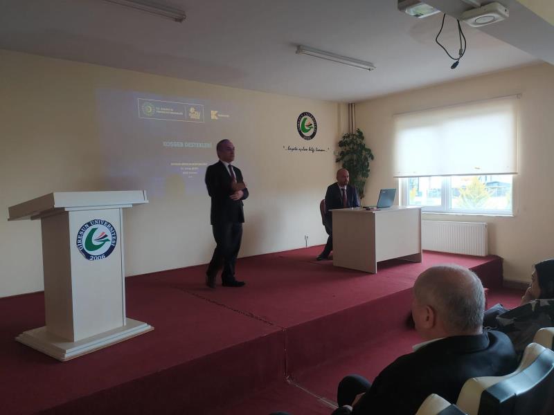 Uygulamalı Bilimler Yüksekokulu Müdürü Sayın Oktay KARAMAN ise öğrencilerin teorik ve uygulamaya dönük bilgi ve beceri düzeylerini geliştirmeye çabaladıklarını, bu kapsamda genç girişimcilerin yerel ve sürdürülebilir iş fikirleri geliştirmelerine katkı sunmayı amaçladıklarını bunu sağlamak üzere Üniversite-Kamu ve Özel sektör işbirliğini önemsediklerini ifade etti.