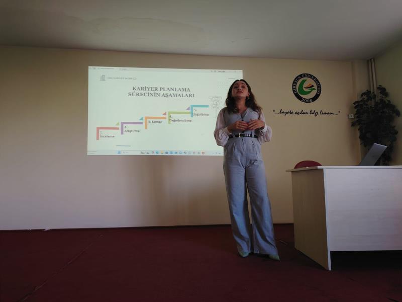 Seminerde öğrencilere kariyer planlamasının önemi, iş dünyasında başarılı bir yol haritası oluşturmanın temel adımları ve kişisel hedeflerin belirlenmesi konularında kapsamlı bilgiler sunuldu. Kariyer Planlama Ofisi uzmanları, mezuniyet sonrası iş bulma süreçleri, staj imkanları, özgeçmiş hazırlama teknikleri ve mülakat becerileri gibi konularda öğrencilere yol gösterici tavsiyelerde bulundu. Etkinlik boyunca öğrenciler, kariyerlerine dair merak ettikleri soruları doğrudan uzmanlara yöneltme fırsatı buldu. Yüksekokulumuz, öğrencilerimizin kişisel ve profesyonel gelişimlerini desteklemeye yönelik etkinliklere önümüzdeki dönemde de devam edecektir.